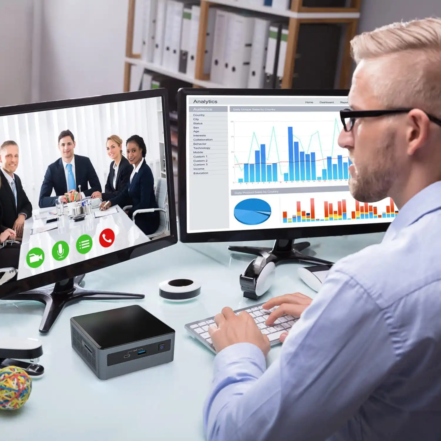 Equipped with integrated Intel UHD Graphics, Thunderbolt 3, and USB-C, it supports high-speed data transfers, multiple 4K displays, and a wide range of peripherals. Ideal for home offices, digital signage, or media centers, it offers expandability with support for M.2 and 2.5″ SATA SSDs, and up to 64GB DDR4 RAM.