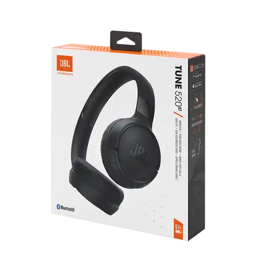 Enjoy wireless freedom with the JBL Tune 520BT. These lightweight, on-ear Bluetooth headphones deliver JBL Pure Bass Sound, up to 57 hours of battery life, and a built-in microphone for hands-free calls on the go.