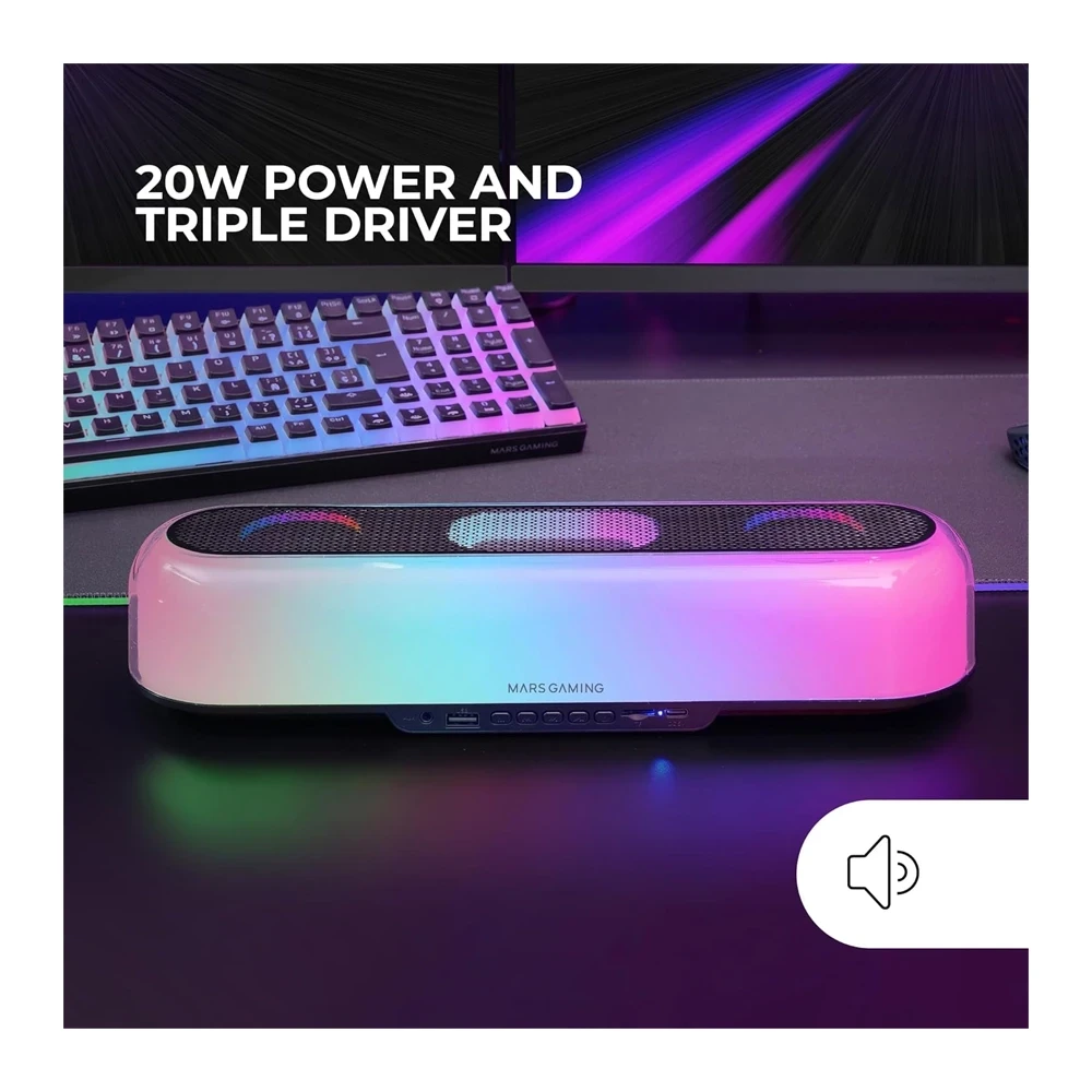 Mars Gaming MSBXW RGB Soundbar 10W USB – White Desktop Speaker