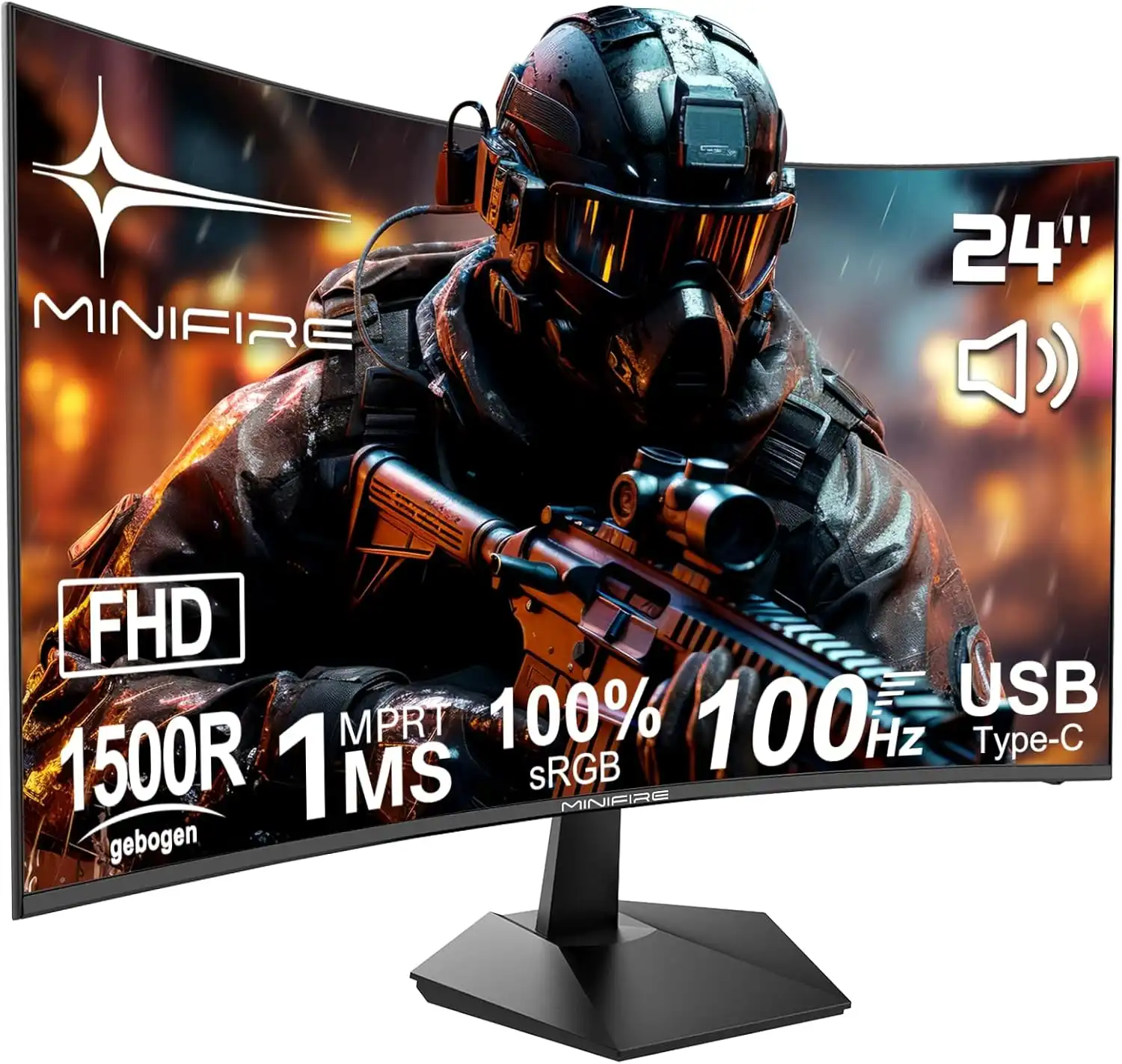 The MINIFIRE MF24C1 24-inch curved Full HD monitor is designed to deliver immersive visuals and smooth performance for work, entertainment, and casual gaming. With its curved screen design and 1920×1080 FHD resolution, the display enhances depth and reduces eye movement for a more comfortable viewing experience. The 100Hz refresh rate ensures fluid motion and sharper transitions, making it ideal for fast-paced content and multitasking.