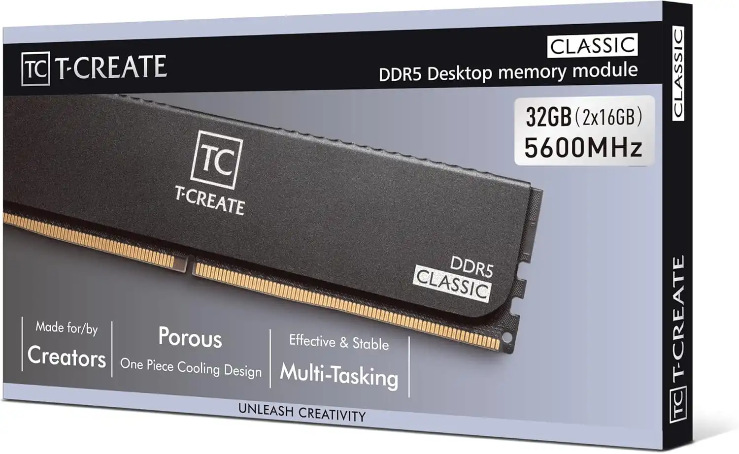Upgrade your desktop with the T-Create by TeamGroup DDR5 32GB (2×16GB) 5600MHz Desktop Memory Kit, engineered for high performance and creative workloads. Featuring blazing-fast DDR5 5600MHz speed, this dual-channel kit enhances multitasking, rendering, and gaming performance with exceptional stability. Built using premium ICs and a sleek aluminum heat spreader, it ensures efficient heat dissipation and long-lasting durability. Ideal for content creators, designers, and gamers, the T-Create DDR5 memory delivers superior bandwidth, lower latency, and next-level responsiveness. Take your system’s power to new heights — choose TeamGroup T-Create DDR5 for uncompromised performance and reliability.