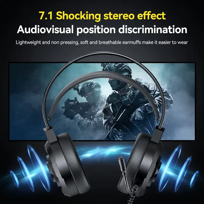 The built-in noise-reducing microphone ensures smooth and clear communication, making it perfect for team gaming, voice calls, and streaming. Its soft padded ear cushions and adjustable headband provide a comfortable fit for long gaming sessions without fatigue.