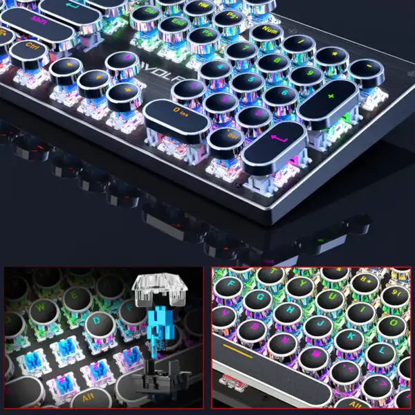 Dominate every game with the T-WOLF T75 104 Keys RGB Mechanical Keyboard. Engineered with responsive cyan mechanical switches, this keyboard delivers tactile feedback and ultra-fast keystrokes for gaming and typing alike. The full 104-key layout ensures compatibility with all your favorite games and applications, while the RGB backlighting provides stunning, customizable effects that match your setup.